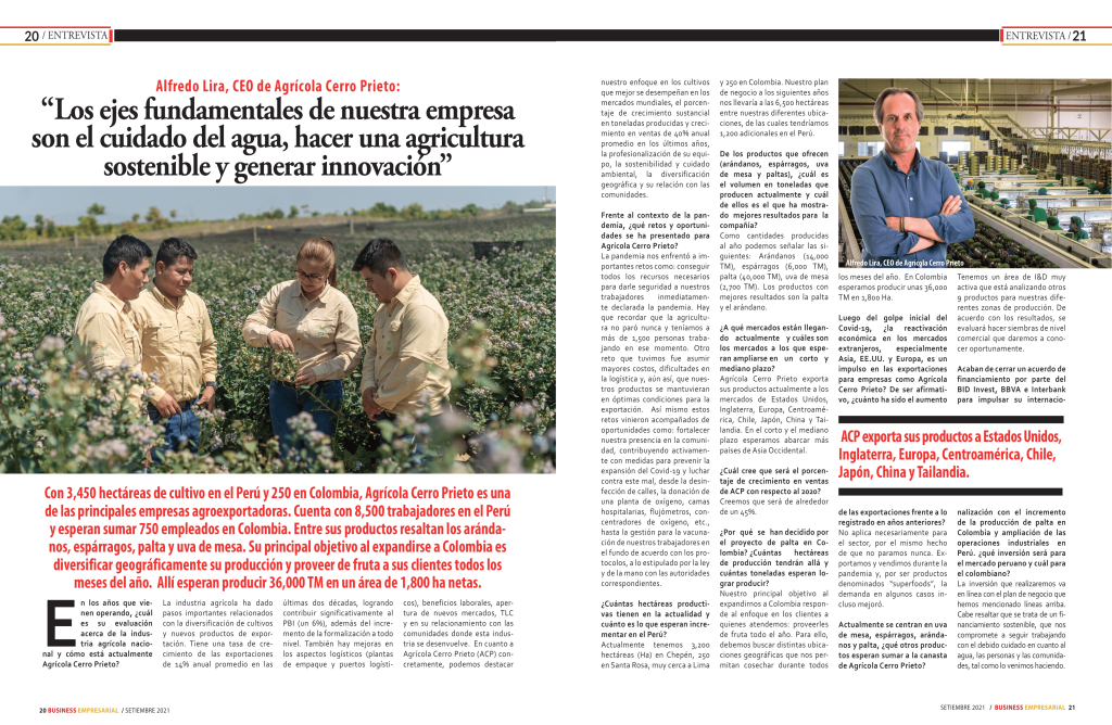 Alfredo Lira, CEO de Agrícola Cerro Prieto en Business Empresarial